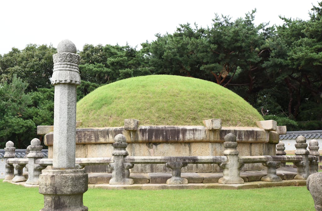 Most of the other Joseon tombs are in the northern suburbs or northern outskirts of Seoul. To the uninformed observer, they may appear scattered at random. In reality, their locations were precisely picked using Pungsu. A Korean equivalent of China’s Feng Shui, this system determines how spaces should be arranged to create harmony between humans and their surroundings. Many of the Joseon tombs were positioned with a hill to their rear, offering natural protection, and facing south toward water, with mountains visible in the distance.
