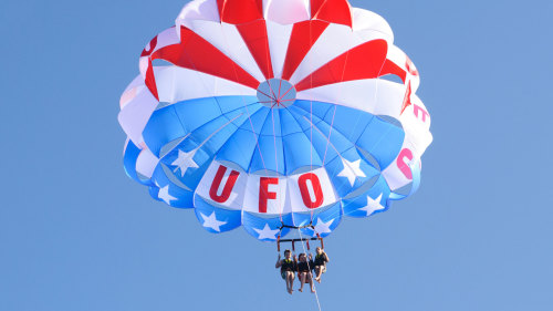 Once secured into the harness, you take off with ease from the boat's platform. The silence and serenity is breathtaking as you ascend into the sky. The horizon and the Kona coastline appear like postcards as you soar. On your descent, you may choose to be dipped in the ocean for an extra thrill or stay dry.