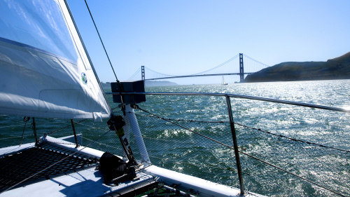 Up-close look at the Golden Gate Bridge as you sail under it