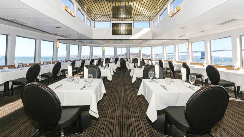 After you eat, you can hit the dancefloor, where the DJ spins Top 40 hits guaranteed to get you moving. Or, order up a cocktail and retreat to the deck, where you can listen to chill lounge music as you watch the city sights drift by.