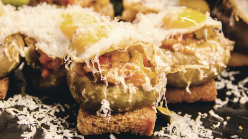Rejoice in the amiable atmosphere, meet attentive townspeople, and explore the history and culture of this miniature haute cuisine. Listen to your knowledgeable guide to learn how pintxos were born—from an idea of a small slice of bread with some food on top, held together with a toothpick.